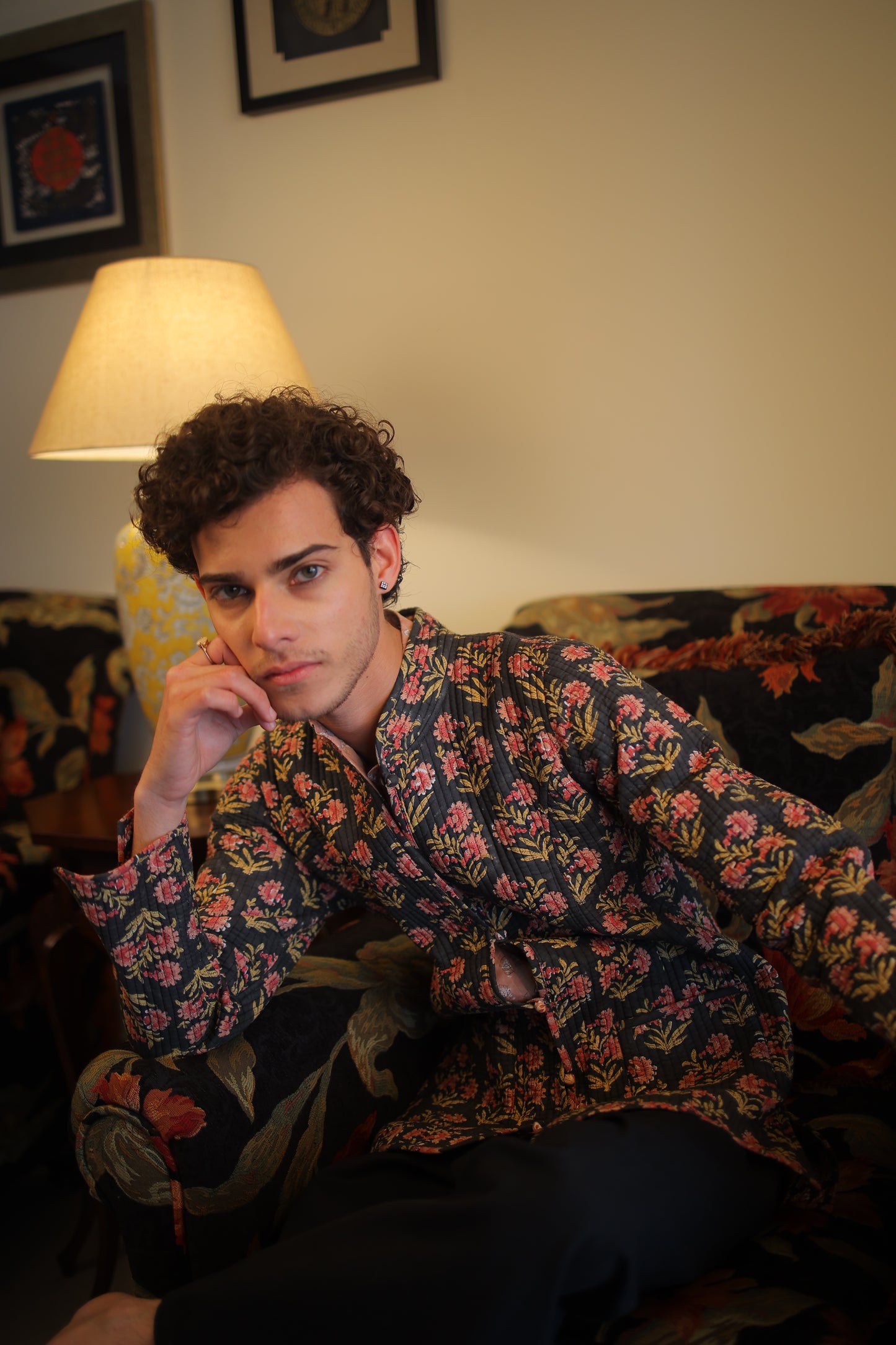 Introducing our Hand Block Printed Black Color Base Buti Quilted Jacket, a delightful fusion of warmth, style, and tradition. Crafted with care, this jacket showcases intricate hand block prints in vibrant Pink Buti hues, adorned with charming buti motifs.