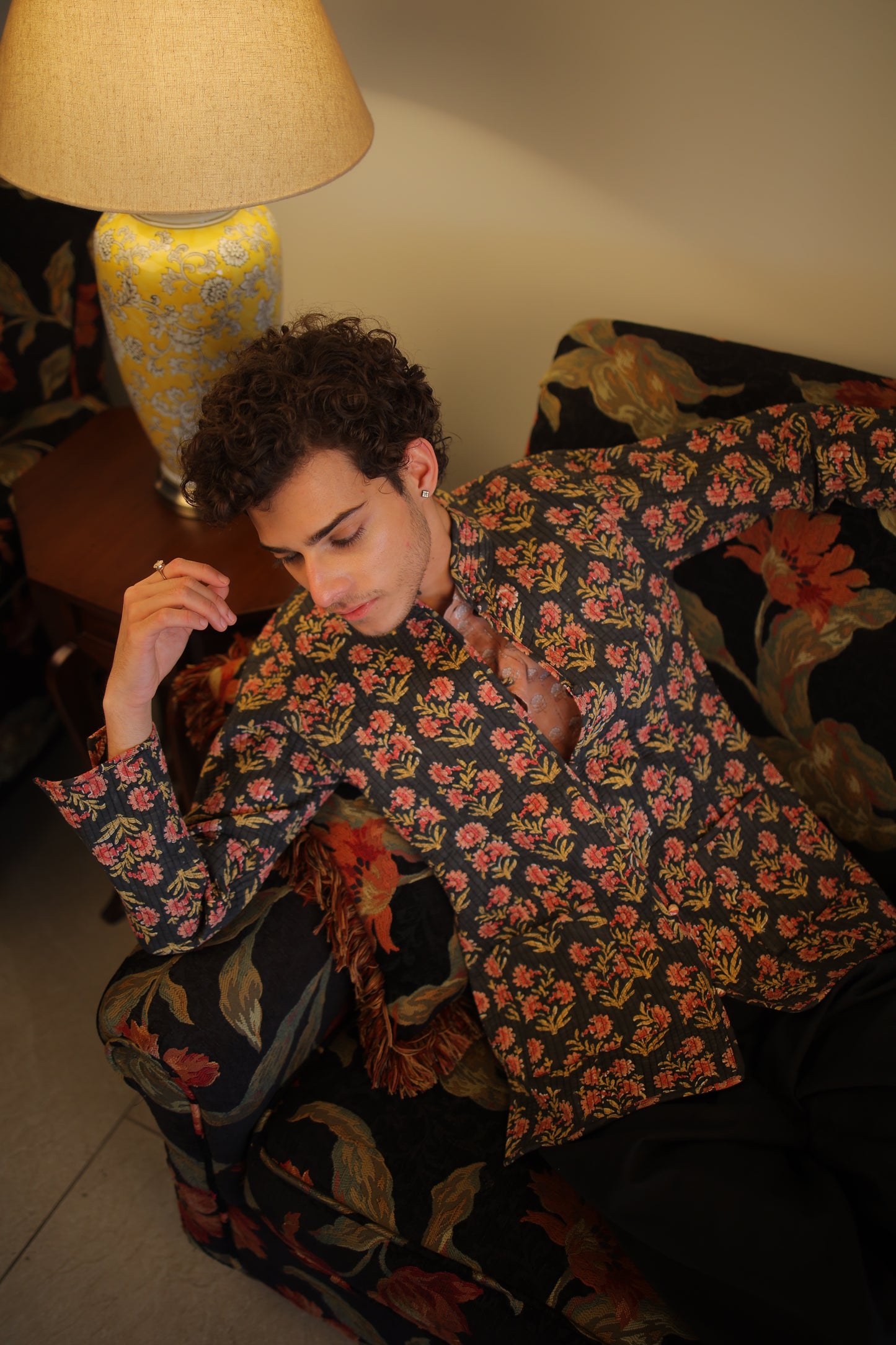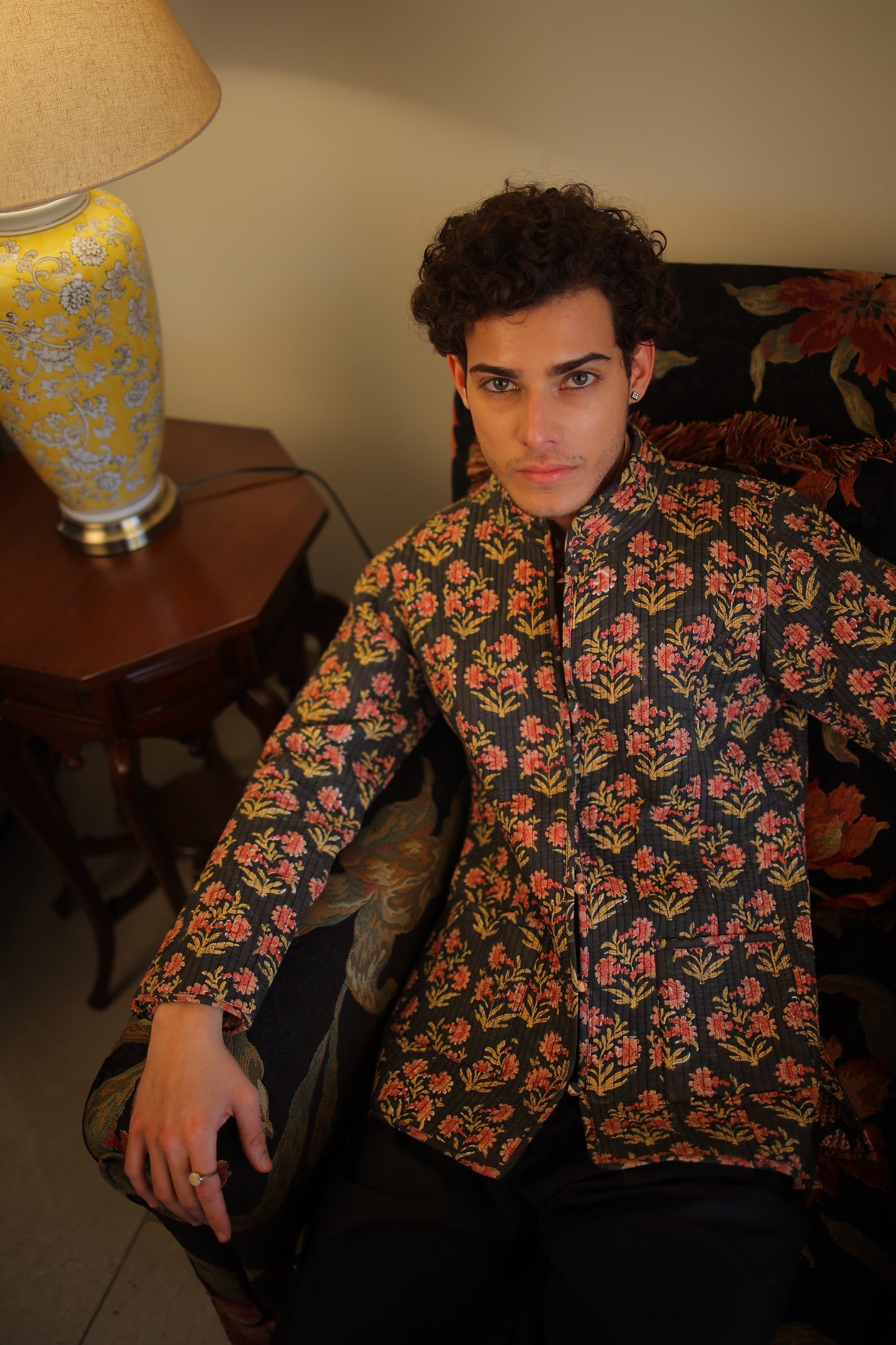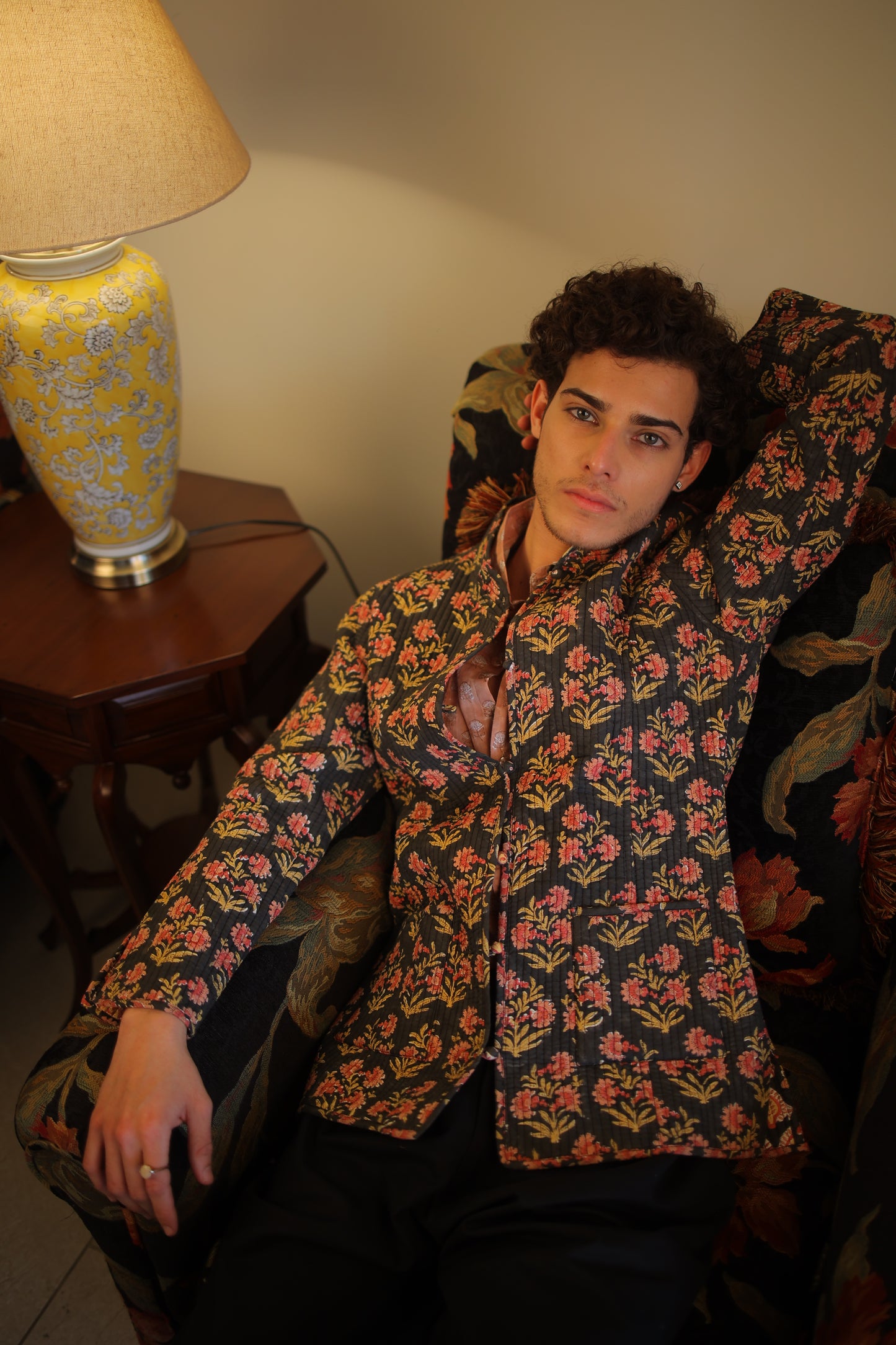 Elevate your wardrobe with our Hand Block Printed Black Color Base Buti Quilted Jacket, a timeless addition that celebrates craftsmanship and individuality. Step out in style and embrace the beauty of handcrafted fashion with every wear.
