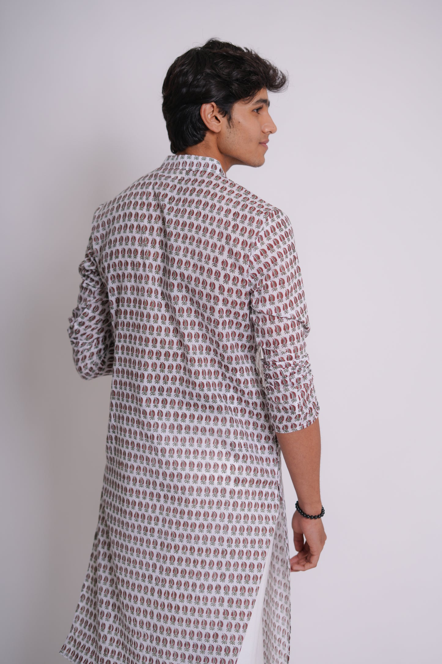 Embrace elegance with the Red Paisley Hand Block Printed Buti Kurta, a perfect blend of traditional artistry and modern comfort. Crafted from fine breathable cotton, this kurta ensures all-day comfort while adding a timeless charm to your wardrobe.